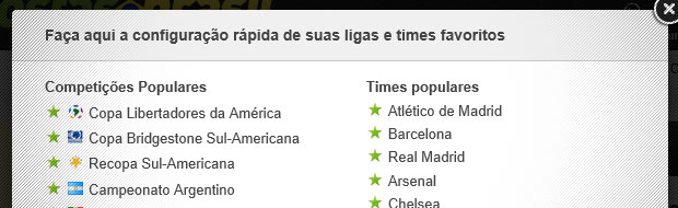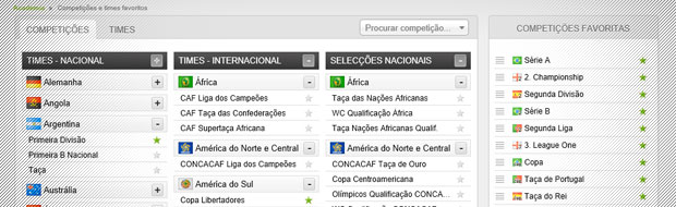 1ª Tab: escolha suas Competições favoritas e ordene-as do lado direito