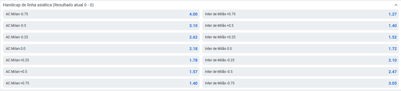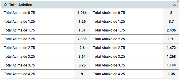Você pode saber melhor o que cada aposta significa em nossa tabela de handicap asiático.