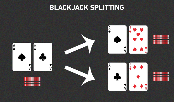 Só há uma hipótese para você dividir sua mão em uma rodada: quando receber duas cartas do mesmo valor. Atenção, não são duas cartas iguais, e sim de valores iguais. Dessa forma, se, por exemplo, receber um valete e um rei, você poderá dividir, pois essas duas cartas têm valem 10. Então, caso receba dois Ases, ou duas cartas iguais de 2 a 9, ou cartas que valem dez (rei, dama, valete e dez), você está permitido a dividir seu jogo nesta rodada.