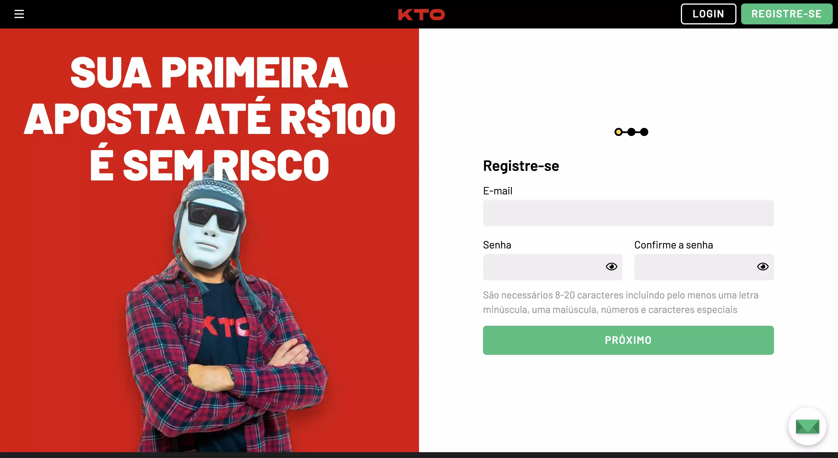 - Cadastre sua conta Kto Apostas, seguido de Kto login;