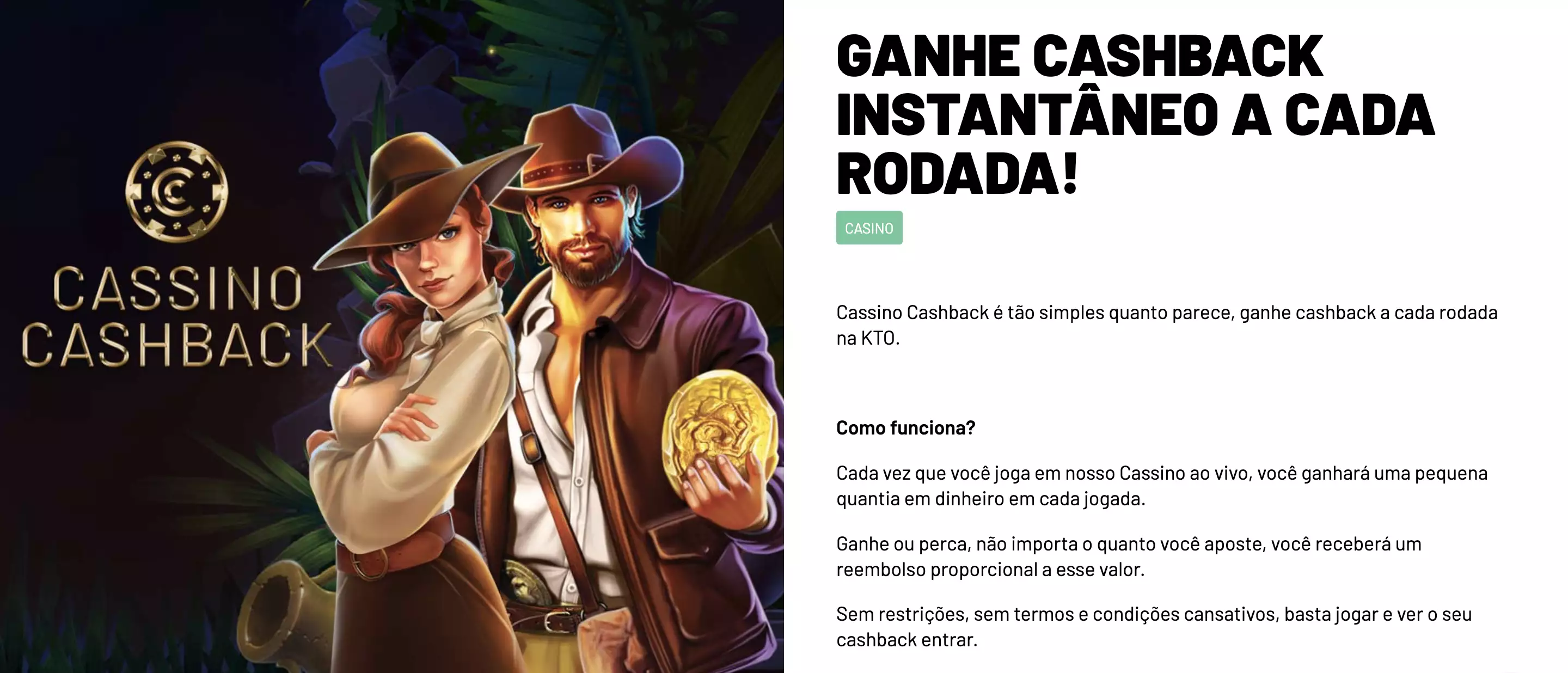A Kto promete ganhos de pequenas quantias em dinheiro em cada jogada no Cassino ao Vivo. O melhor desta oferta é que o cashback é pago em dinheiro real, sem requisitos de aposta. Assim que ganhar, é seu.