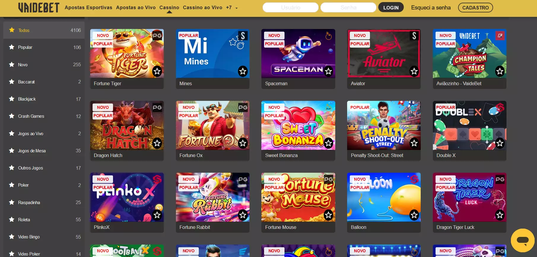 Há muito por escolher, como é caso da cada vez mais procurada slot Fortune Tiger, de bingo ou de Mines online. Em matéria de jogo do crash, por exemplo, há também várias opções, como Aviator ou jogo Spaceman.
