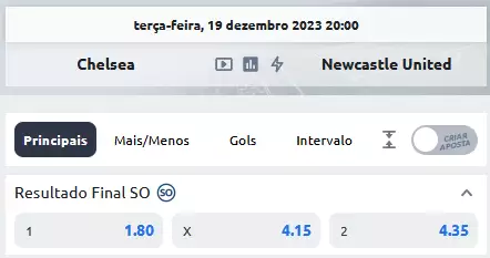 Como pode ver no exemplo acima, o Chelsea está jogando em casa e, por isso, é a equipe do número 1. Como visitante, o Newcastle é o número 2 deste 1X2, enquanto X significa, pois claro, empate.