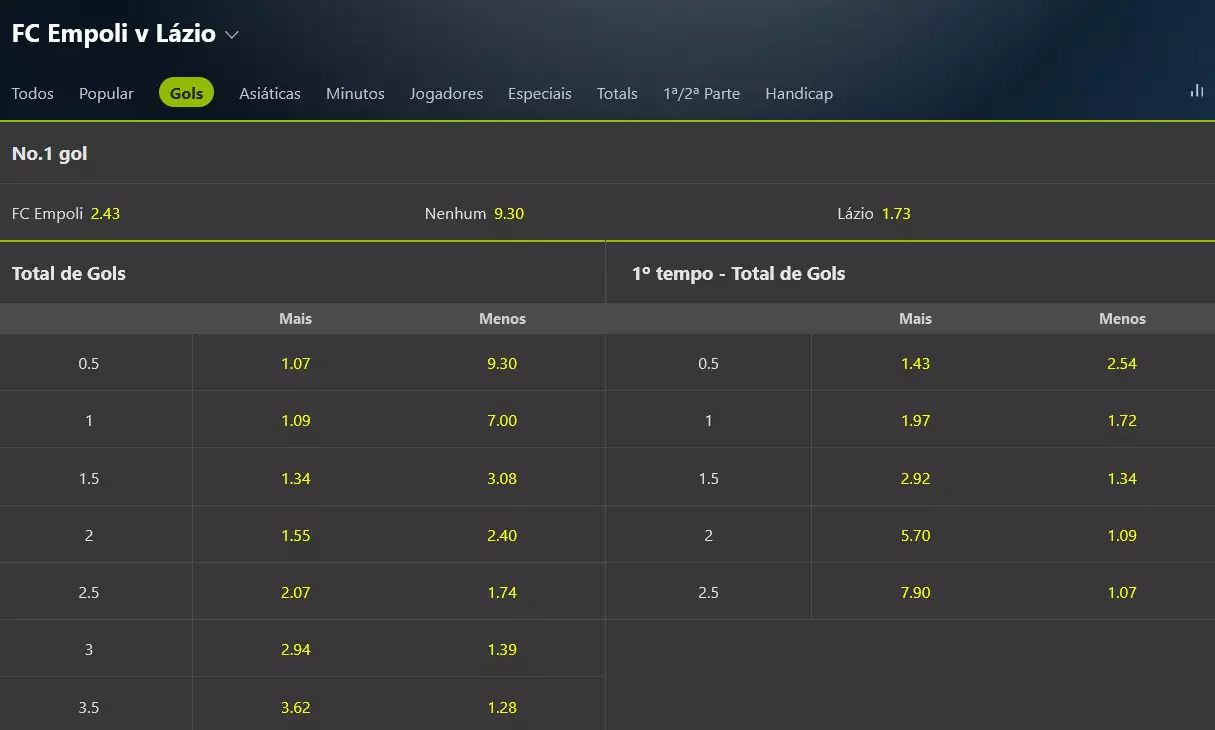 Esse aí é mais comum em futebol, já que em esportes como basquete ou tênis isso não faz sentido. Também conhecido por BTS, esse mercado é procurado por quem acredita que os dois times da partida serão capazes de marcar gol.- Número de gols ou pontos
