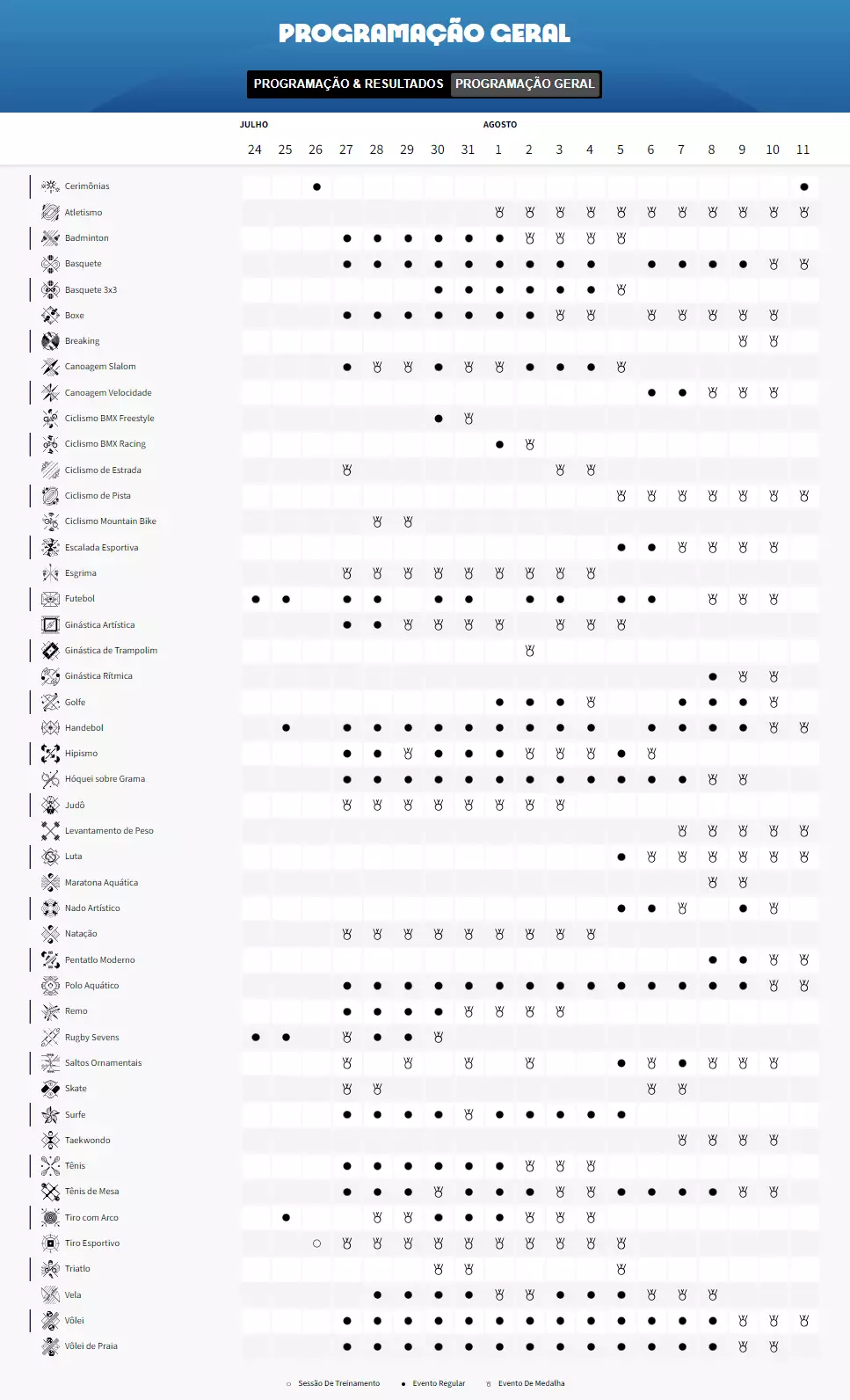 A programação da competição está sujeita a alterações até à conclusão das Olimpíadas.
