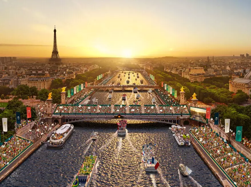 Imagem que mostra como será a cerimônia de abertura de Paris 2024