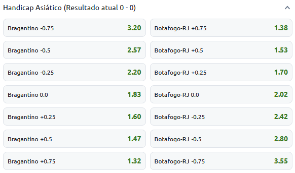 Uma vez que você estará dando uma vantagem de meio gol ao Botafogo +0.5, isso significa que será green se o "Fogão" ganhar ou empatar. Repare: se a partida terminar 1-1, o Botafogo estará por cima devido à vantagem fictícia que lhe deu.