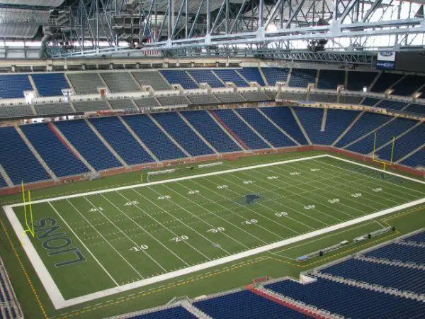 Ford Field fica localizado em: 2000 Brush Street, Detroit, Michigan, Estados Unidos.